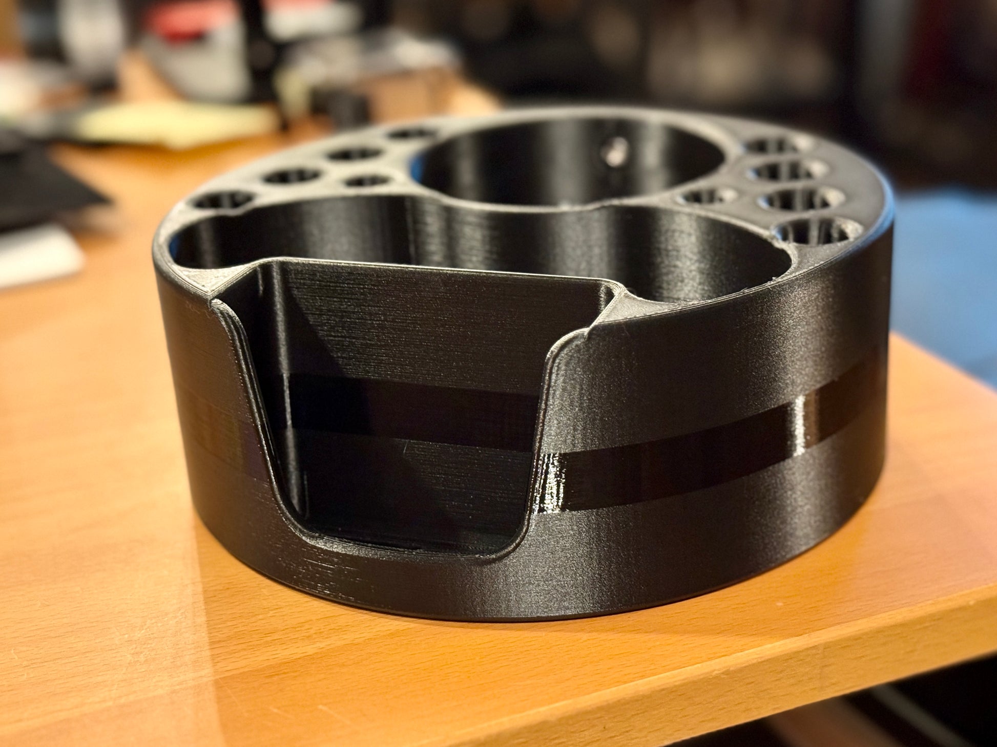 Then, we upped the drink holder size as well to accommodate the big Nalgene bottle and everything up to a 3.75" diameter.