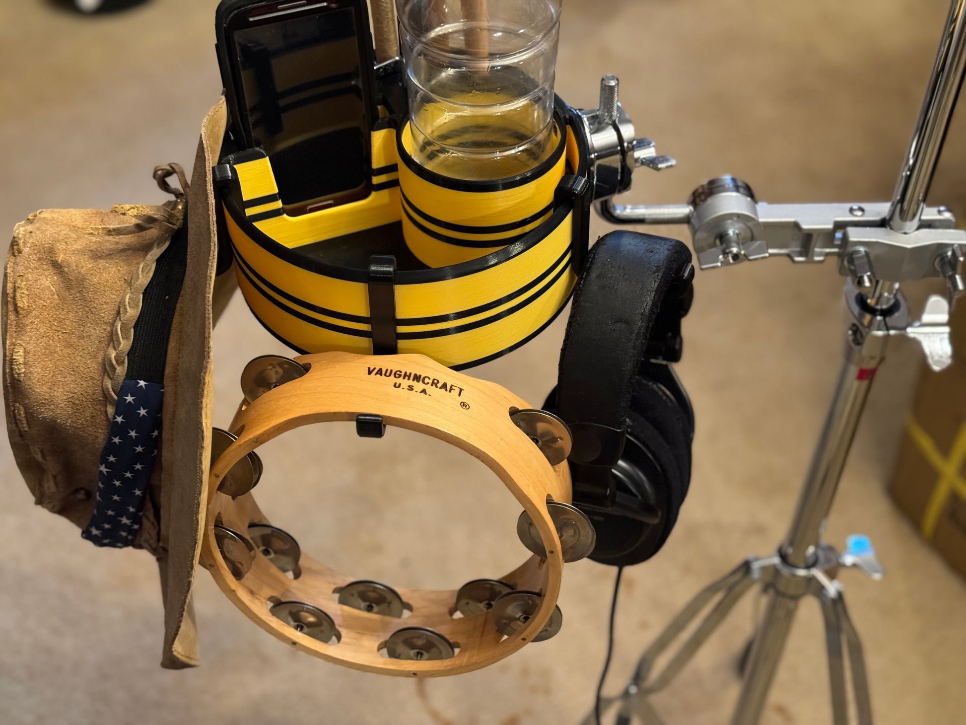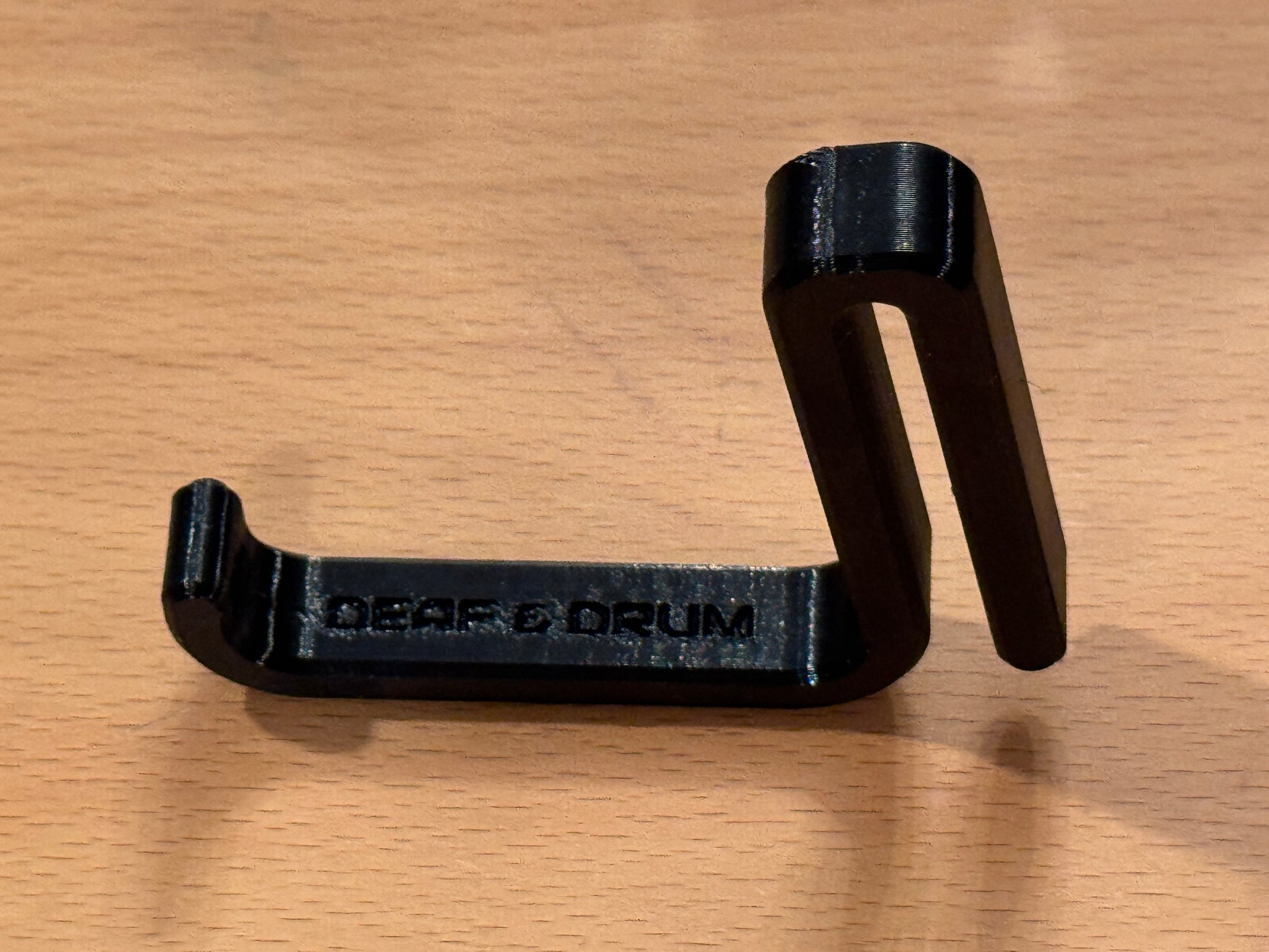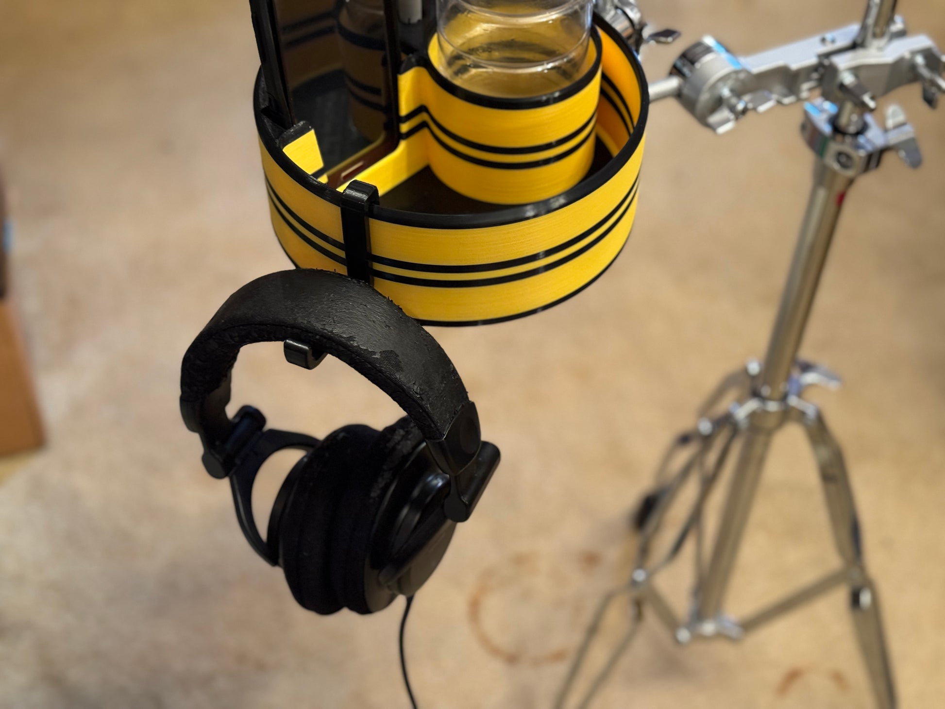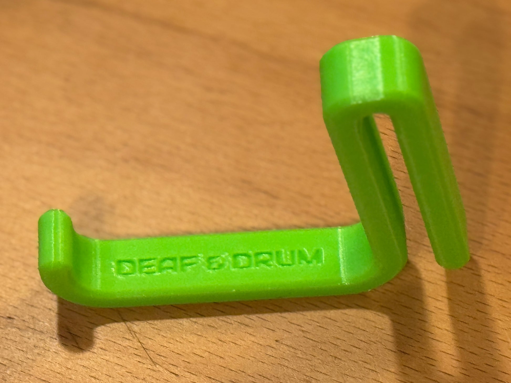 This TPU hook will slide over the side of the Drum Buddy Cyclops, Bigmouth, Megamouth, Popeye, and Mini to hold your headphones, hat, towel, tambourine or any other hangable percussion item.