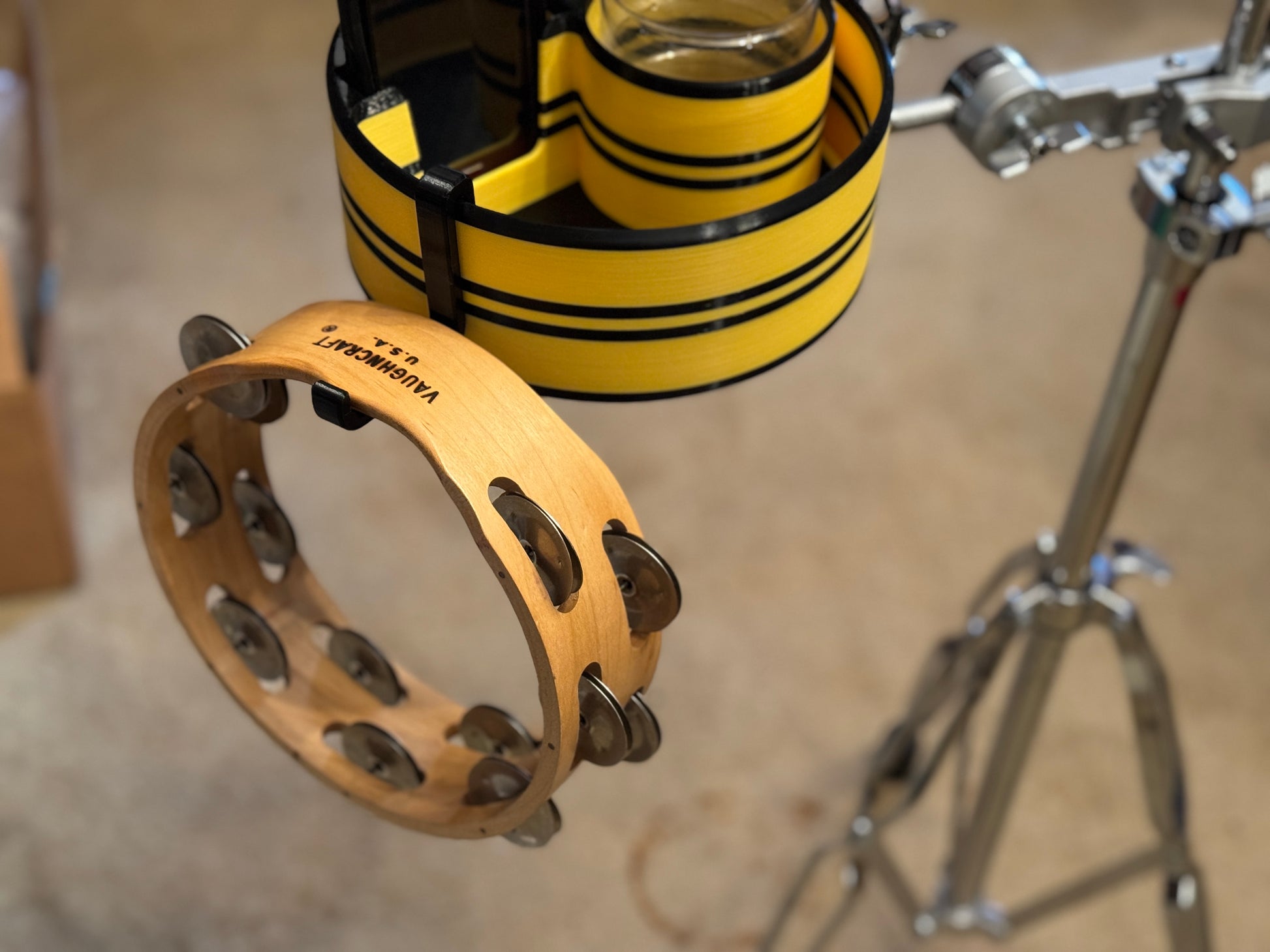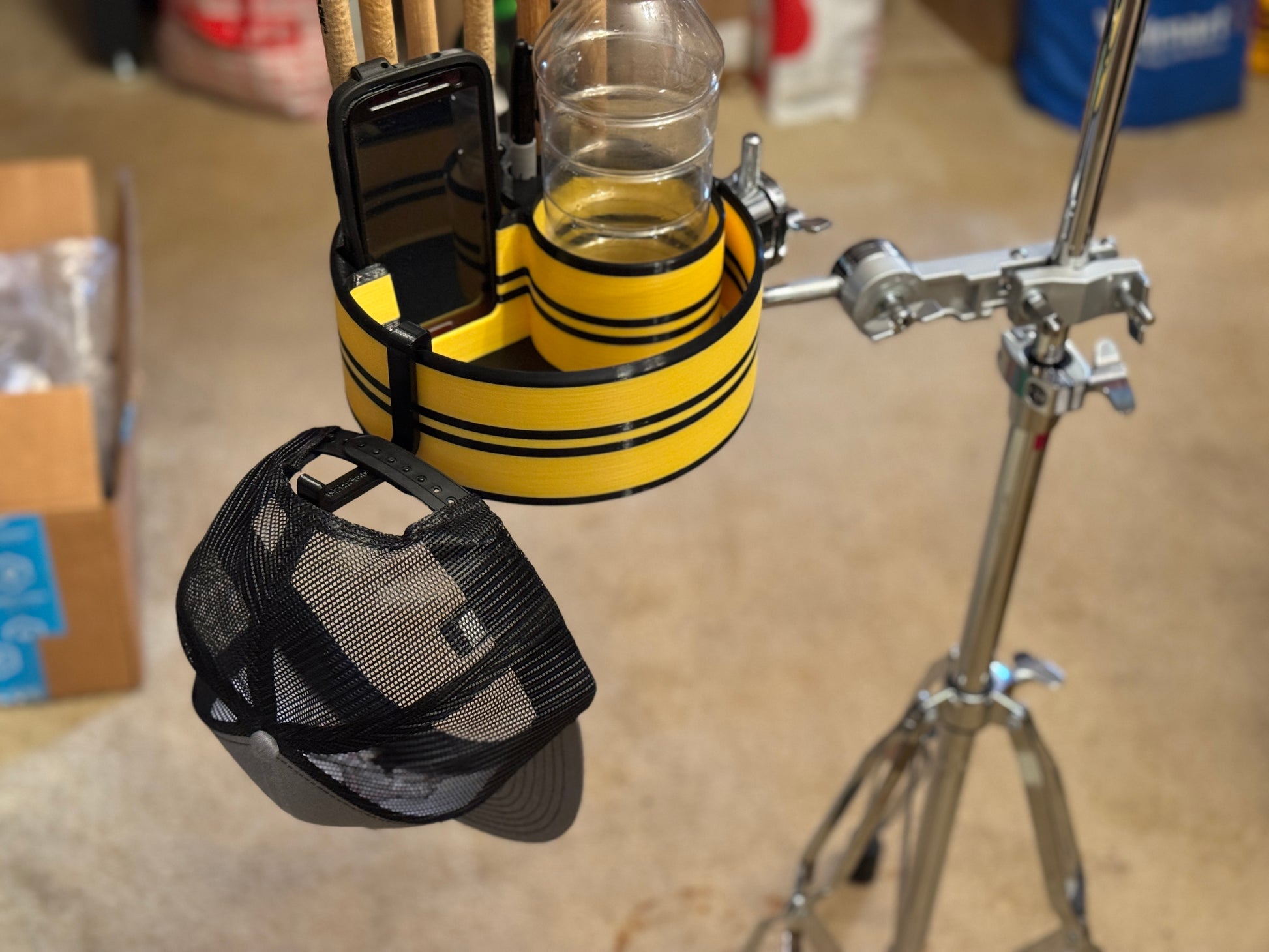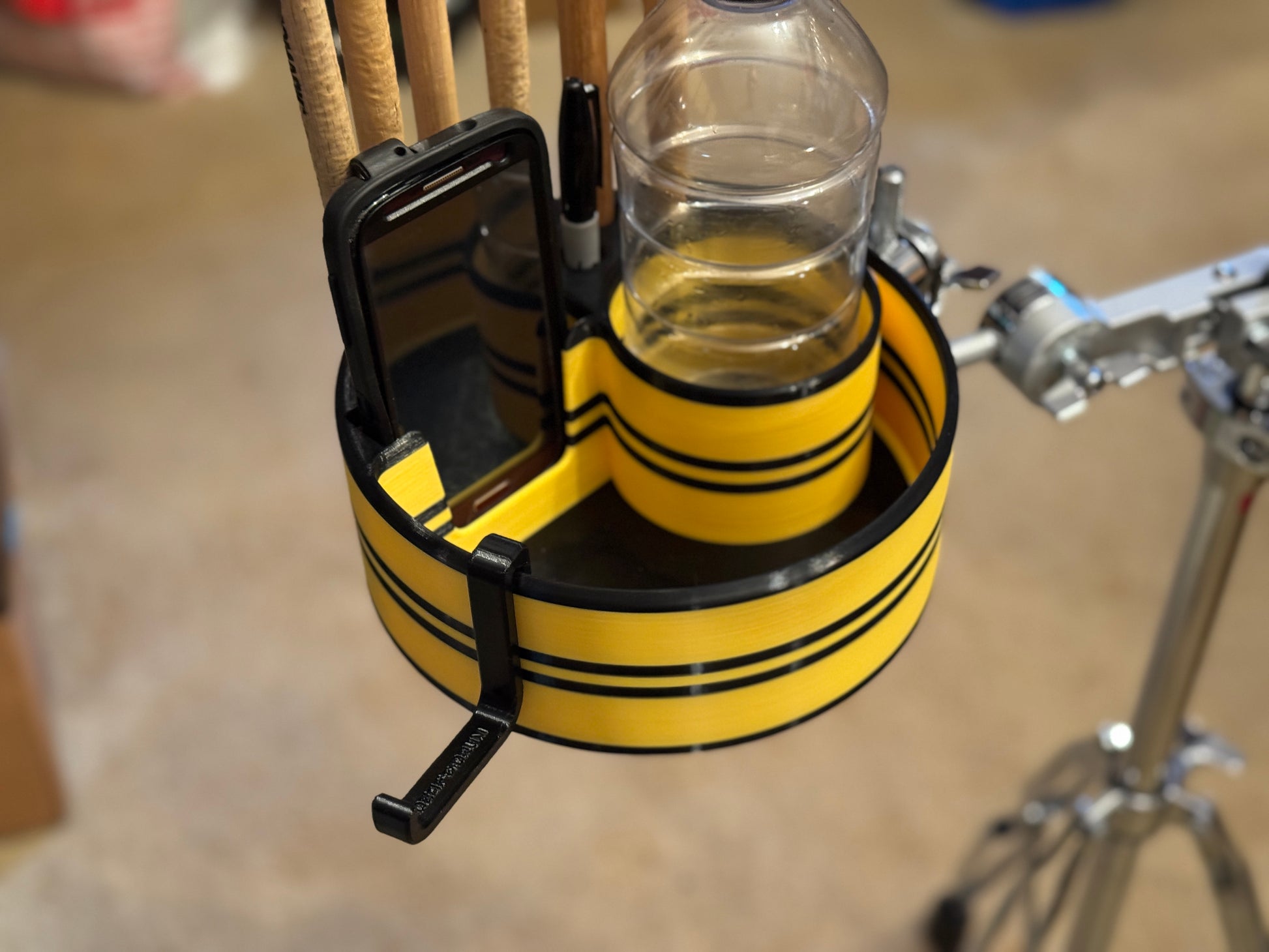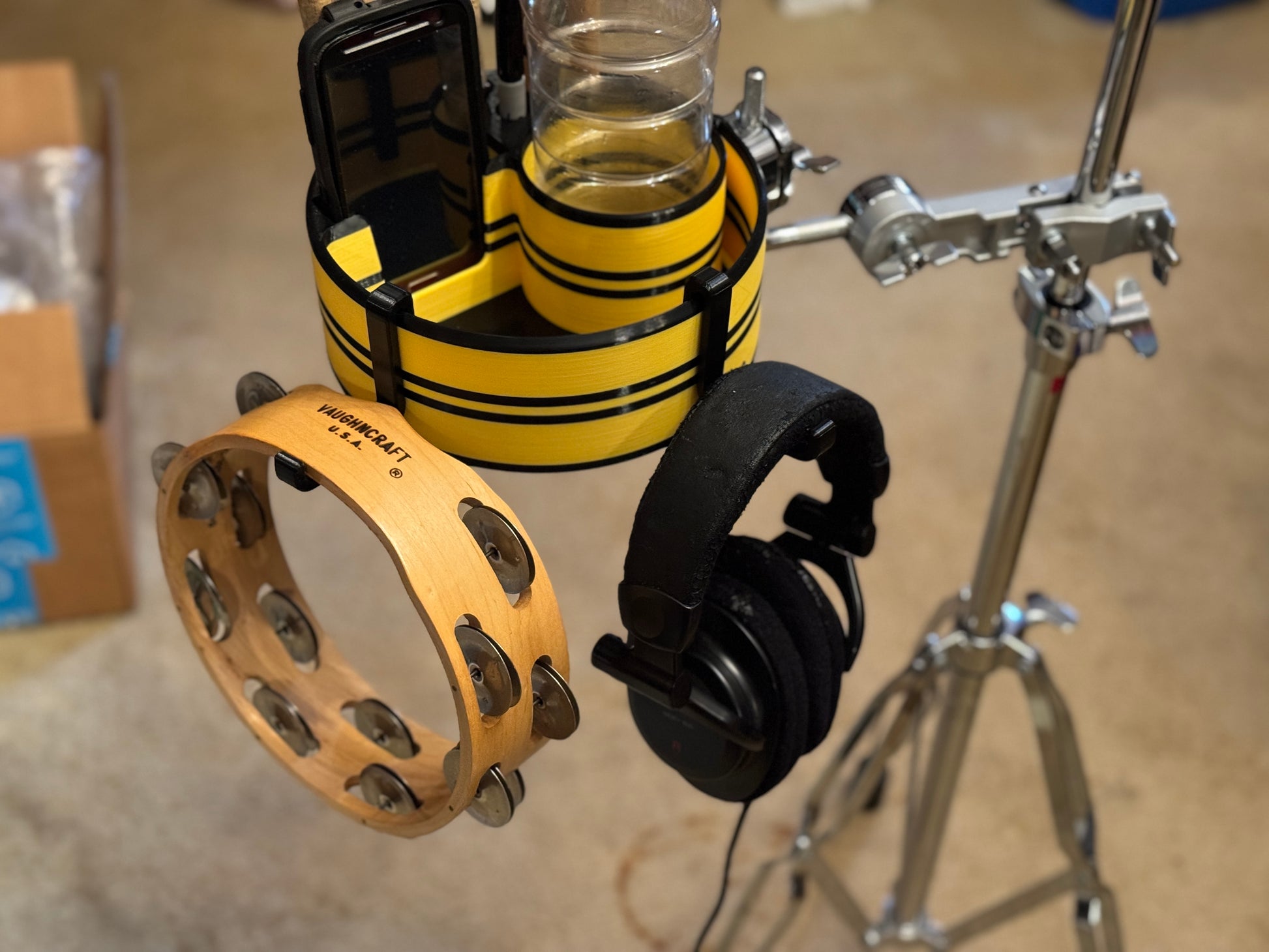 This TPU hook will slide over the side of the Drum Buddy Cyclops, Bigmouth, Megamouth, Popeye, and Mini to hold your headphones, hat, towel, tambourine or any other hangable percussion item.